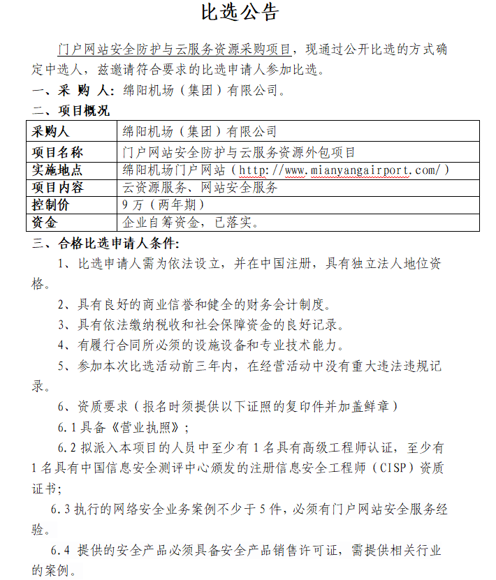 門戶網(wǎng)站安全防護(hù)與云服務(wù)資源項(xiàng)目采購(gòu)(第二次)